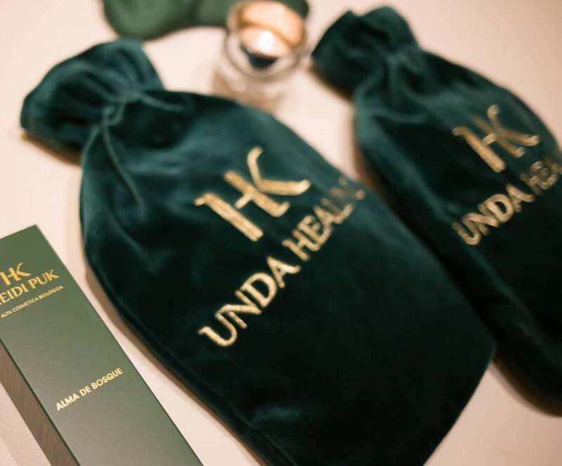 Para potenciar aún más los efectos de esta terapia, Unda Healing® se aplica con la fórmula corporal **Alma de Bosque®**, creada por Heidi Puk®. Esta mezcla única de plantas adaptógenas actúa directamente sobre los receptores cutáneos, proporcionando una profunda sensación de calma y bienestar, mientras ayuda a restablecer la energía vital. La sinergia entre el movimiento manual de Unda Healing® y las propiedades curativas de Alma de Bosque® crea un ritual completo que regenera tanto el cuerpo como el espíritu.